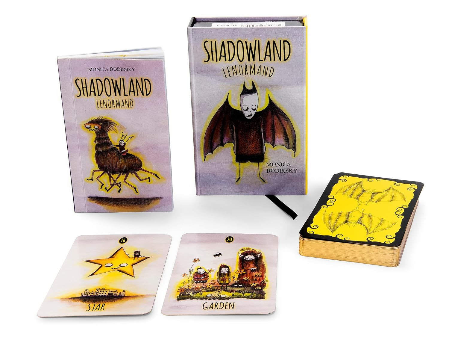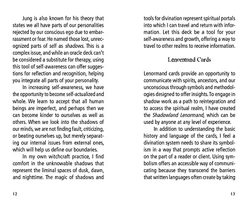 Strach przed tym, czego nie widzimy, potrafi przywołać obrazy wygłodniałych bestii gotowych do ataku z cienia. Jednak to właśnie w cieniu ujawnia się ukryta prawda. Zapoznaj się z cienistymi aspektami naszych archetypowych osobowości poprzez zabawne i dziwaczne, atramentowe i akwarelowe stworzenia, które składają się na tę 36-kartową talię Lenormand i towarzyszący jej przewodnik. Dla początkujących, jak i doświadczonych profesjonalnych czytelników Lenormand i osób pracujących z cieniem, talia ta wykorzystuje tradycyjne symbole Petit Lenormand, aby zapewnić pomysłowe rozwiązania codziennych wyzwań. Dla kreatywnych poszukiwaczy w podróży samopoznania, talia ta stanowi skuteczne narzędzie dostępu do ukrytej wiedzy i wzmocnienia, w tym wprowadzenie do kartomancji Lenormand, znaczeń kart, refleksji i pytań. Zawiera łatwe do naśladowania rozkłady, dzięki którym możesz odkrywać, kontemplować i integrować wcześniej nieuświadomione aspekty swojego życia i osobowości. Nie dla osób o słabym sercu, ta bezsensowna talia przechodzi od razu do rzeczy! Jest to idealne uzupełnienie talii Shadowland Tarot.