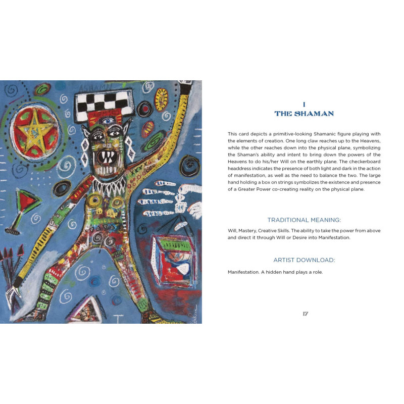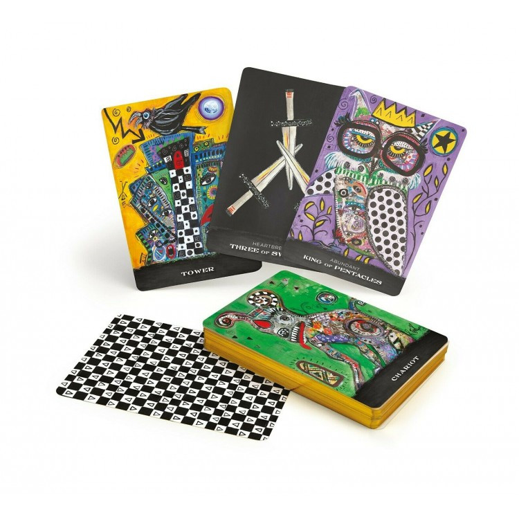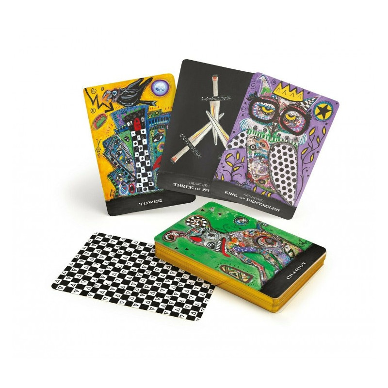 Zachwyć swoje zmysły i poczucie humoru z tą kolorową, kapryśną i buntowniczo unikalną 78-kartową talią Tarota. Z żywą sztuką stworzoną w surowym, intuicyjnym stylu "outsider art" lub art brut, ta talia podąża za tradycyjną symboliką Tarota w kreatywnie dziwaczny, ale bardzo przystępny sposób. Znajdziesz tu przekłute i spiczaste panny poszukujące jednorożców, szamanów o dwóch twarzach, królowe indyków, słoniowe anioły i niekończący się taniec światła i ciemności. Każda karta archetypowa zawiera wiele warstw znaczeniowych i jest przesiąknięta alchemiczną, astrologiczną i ezoteryczną symboliką z kilku magicznych i szamańskich tradycji - różnych ścieżek prowadzących do tego samego celu: Wewnątrz. Dołączony przewodnik przedstawia jasne wyjaśnienia każdej karty, w tym odwrócenia i dodatkowe znaczenia, które artystka otrzymała bezpośrednio podczas "pobierania" swojej sztuki z Twórczego Eteru. Pozwól, aby moc tej rewolucyjnej talii przekształciła cię od środka.