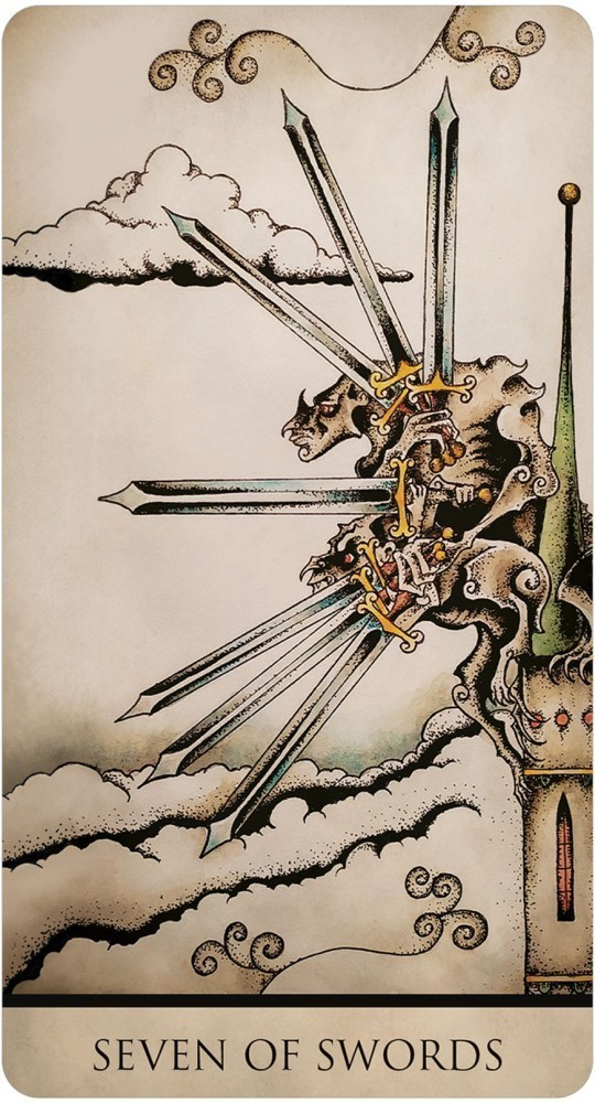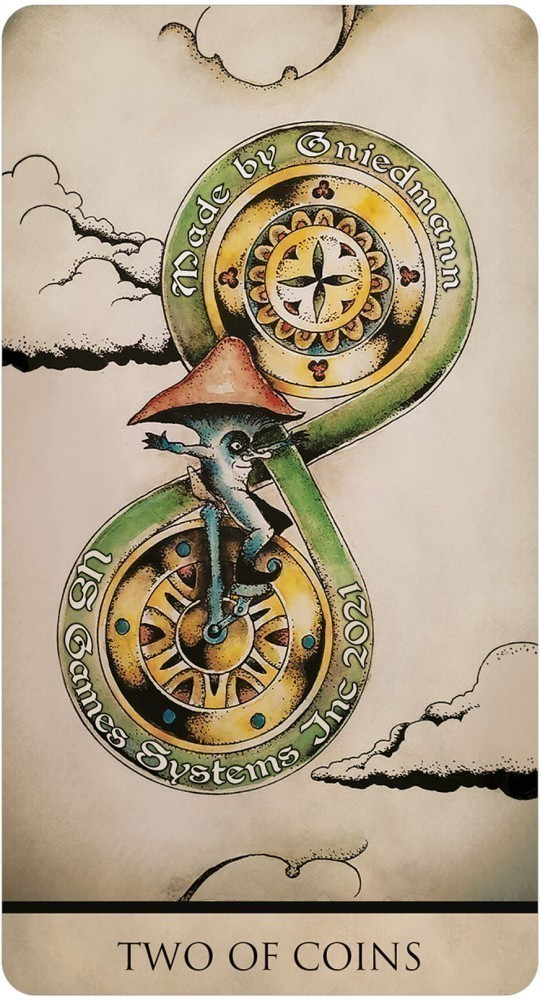 Odległe miasto Nuages, w krainie chmur, ma swoją własną kulturę, stworzenia, tradycje i tarota. Tarot Nuages oddaje hołd tarotowi w stylu marsylskim z pewnymi antycznymi elementami, ale obejmuje również nowoczesnego, zabawnego ducha z goblinami, pingwinami, pixies, gargulcami i animowanymi grzybami zamieszkującymi Małe Arkana. Arkana Wielkie wprowadzają panteon półbogów i wysoko postawionych osobowości, które poprowadzą czytelników przez niezapomnianą tarotową podróż. Zawiera 79 kart i 64-stronicową książeczkę.