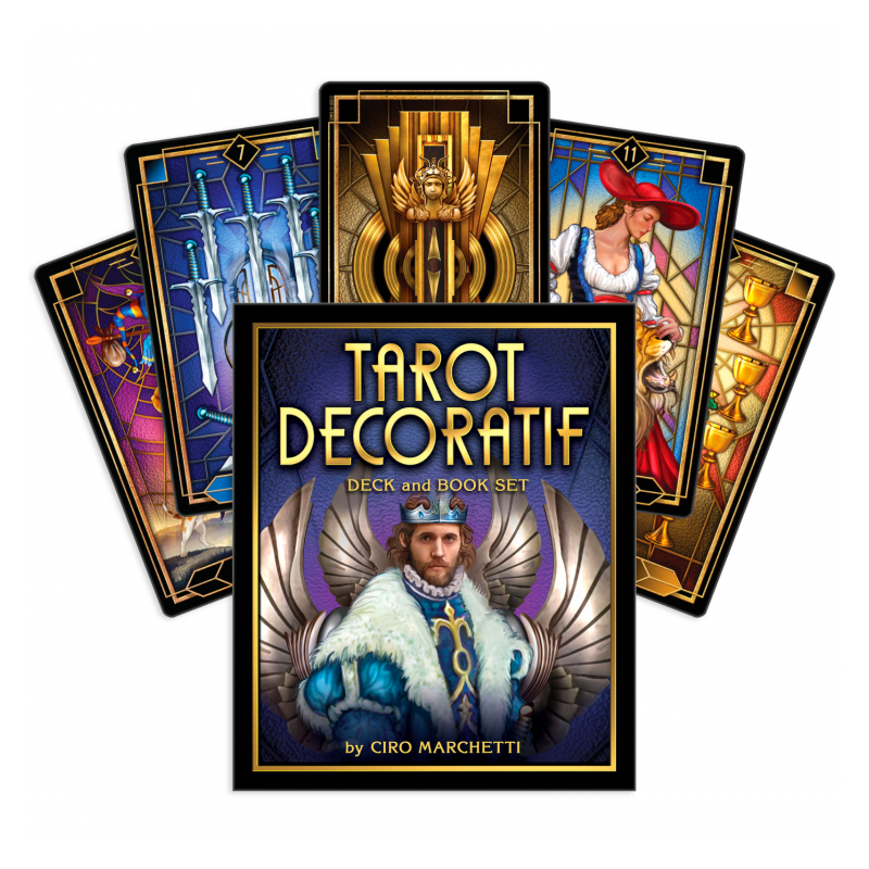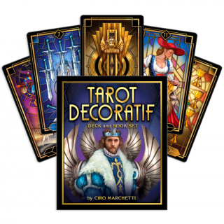 Tarot Decoratif artystycznie łączy elementy dwóch filarów współczesnej praktyki tarota, Smith-Waite® Tarot i Tarot de Marseille. Uznany artysta tarota Ciro Marchetti przedstawia unikalne spojrzenie na klasyczną ikonografię tarota, oddając hołd tradycji, a jednocześnie przemawiając do nowoczesnej wrażliwości. 168-stronicowy ilustrowany przewodnik bada historię, mitologię i religię ukrytą w 22 Triumfach (Major Arcana) i zawiera dogłębny kurs jak interpretować numerologicznie Minor Arcana.