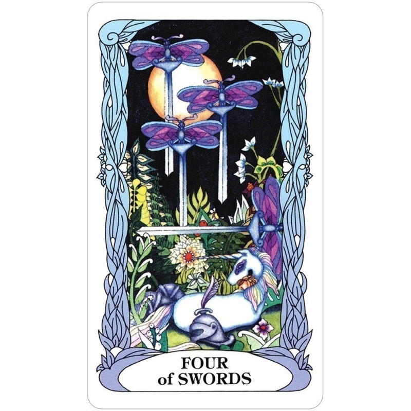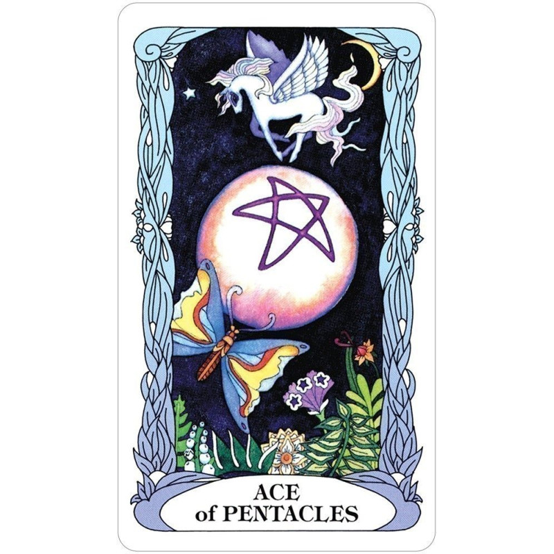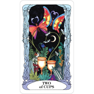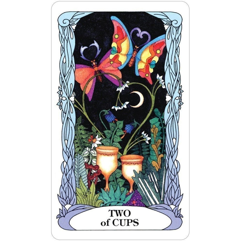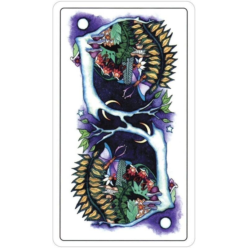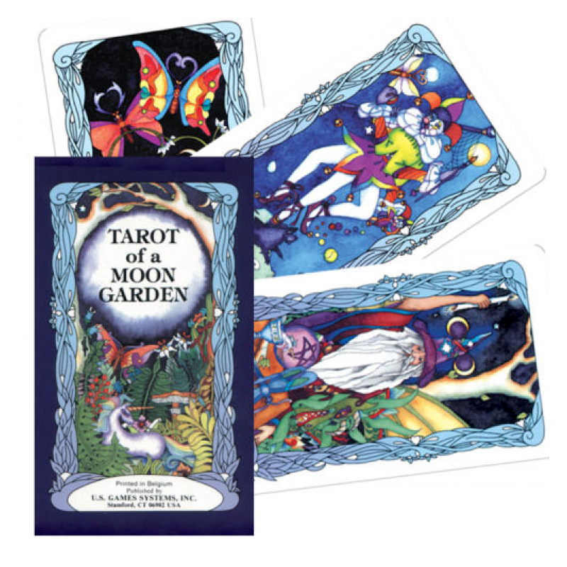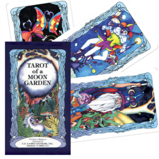 Tarot Księżycowego Ogrodu dostarcza swoje tajemne sekrety na skrzydłach ważek, motyli, aniołów i wróżek. Jednorożce i delfiny przynoszą wnikliwe wiadomości z odległych krain. Ta świetlista talia łączy tradycyjną symbolikę tarota, magię żywiołów i refleksyjne fazy księżyca. Tarot of the Moon Garden podąża za tradycyjnymi czterema garniturami tarota z ważkami tworzącymi zawias garnituru mieczy. Smoki wskazują obszary do transformacji i ostrzegają przed pokusami. Niech księżycowa energia Księżycowego Ogrodu zainspiruje Cię podczas odkrywania miejsc, do których poprowadzi Cię Twoja wyobraźnia.