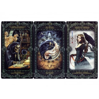 Alchemy 1977 - angielskie karty tarota. Alchemy 1977 słynie na całym świecie z oszałamiających gotyckich dzieł sztuki i akcesoriów. Fani tej ikonicznej marki rozpoznają i docenią potężne i uwodzicielskie obrazy w tej niezwykłej i mrocznie pięknej talii tarota. Ta urzekająca mieszanka sztuki od światowej sławy gotyckich ilustratorów rozpościera się od tradycyjnego horroru przez bujne nadprzyrodzone sceny aż po średniowieczną fantazję.