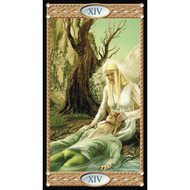 "Tarot Elfów" to talia, z którą konsultowałyby się same elfy! Ta talia zawiera 22 główne arkana, które ilustrują duchową przygodę ojca Albericha. Każdy zestaw Minor Arcana przedstawia podstawową historię kultury i wartości Elfów. Dołączona broszura wskazuje historie i znaczenia każdej karty.