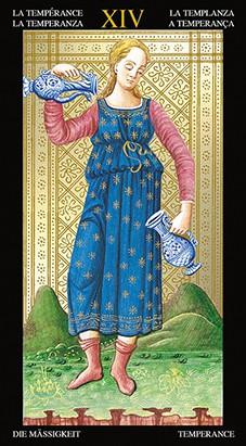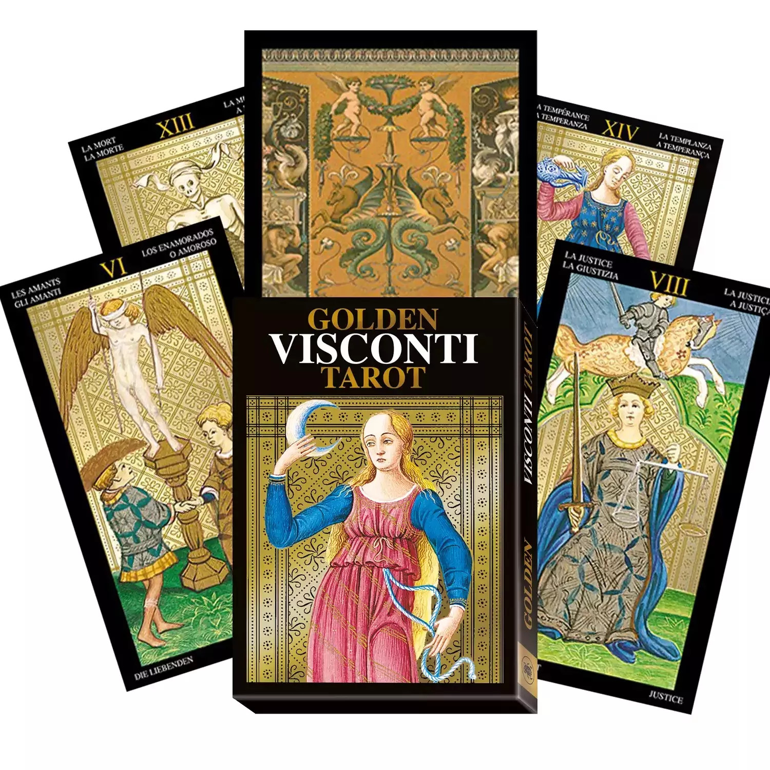 Najstarsza talia Tarota, perła włoskiego renesansu, z odnowionym opakowaniem i rozszerzoną książeczką. Ze złotą folią.