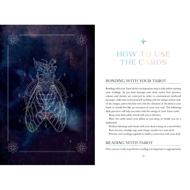 Ta talia kart o tematyce zwierzęcej odzwierciedla naturę za pomocą mitycznych i eterycznych środków i jest bogata w symbolikę zwierząt, pozwalając ci duchowo połączyć się z wszechświatem i sobą poprzez wykwintną sztukę wróżenia. Ta talia jest odpowiednia dla początkujących, entuzjastów i zaawansowanych czytelników tarota. Zawiera 78 unikalnych ilustracji zwierząt, dzięki czemu świetnie nadaje się na prezent dla miłośników sztuki.