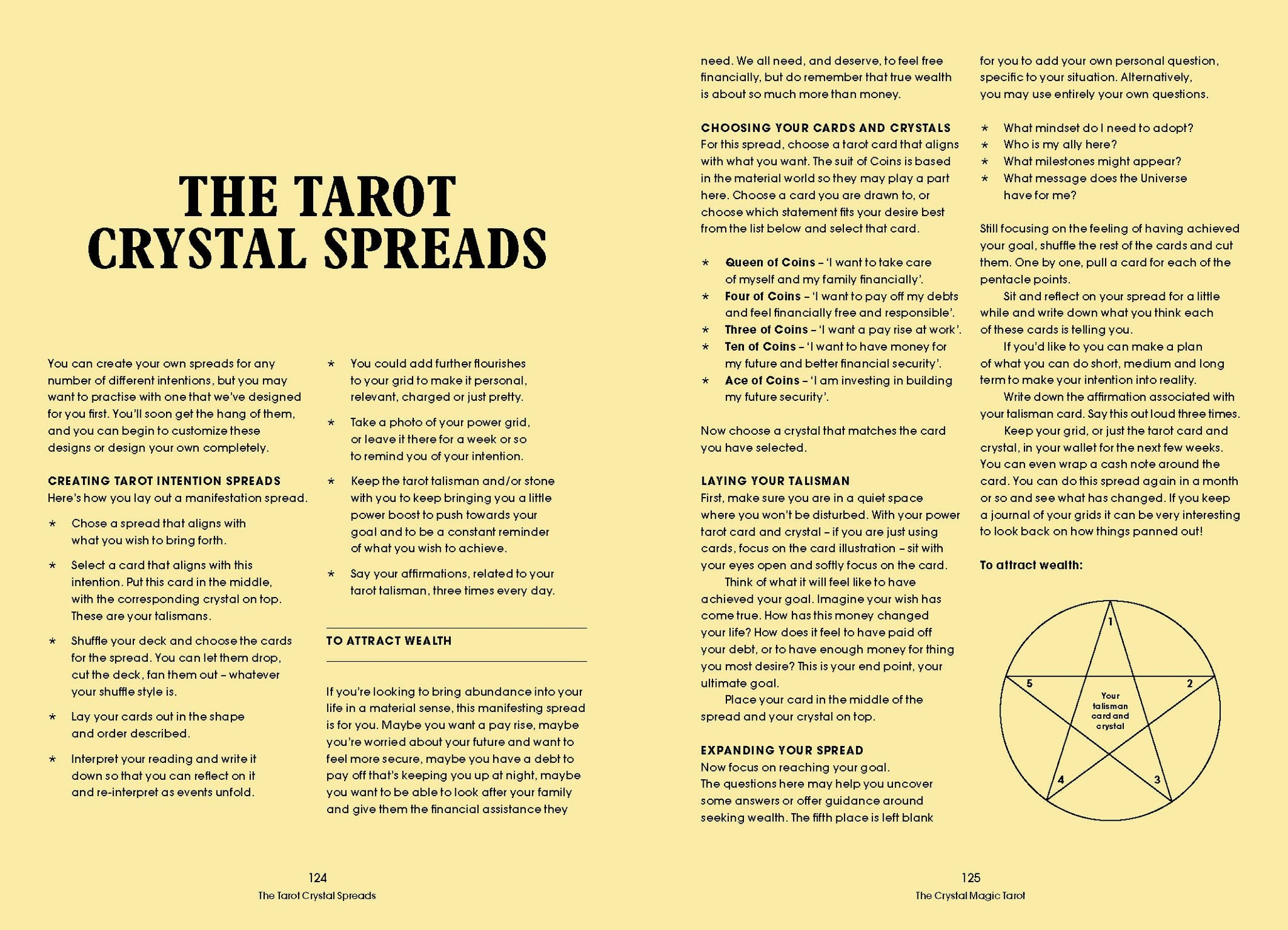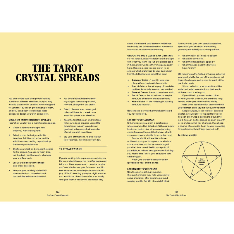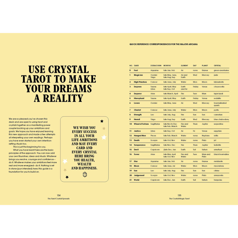 Talia i przewodnik Crystal Magic Tarot rozszerza tradycyjne zastosowanie tarota poza przewidywanie przyszłości do świata ustalania intencji. Ekspert tarota Kerry Ward oraz uzależniona od kryształów czarownica Clare Gregory połączyli swoją wiedzę, aby stworzyć tę 78-kartową talię tarota, która pozwoli ci przejąć kontrolę nad swoim przeznaczeniem i zamanifestować swoją przyszłość. Każda karta jest pięknie zilustrowana i powiązana zarówno z kryształem, który wzmacnia lub chroni cię przed jego energią, jak i afirmacją, która pomoże ci osiągnąć twoje cele. Nie musisz mieć 78 kryształów, aby to zadziałało, w najprostszym przypadku potrzebujesz tylko jednego. Z kilkoma rozkładami tarota sugerowanymi w broszurze - od tego, jak przyciągnąć bogactwo, po nowe początki i uczucie miłości - rolą kryształu jest nadanie mocy twojej intencji i możesz go nosić przy sobie, aby sobie o tym przypomnieć. Ta wyjątkowa i potężna talia sprawi, że twoje marzenia staną się rzeczywistością.