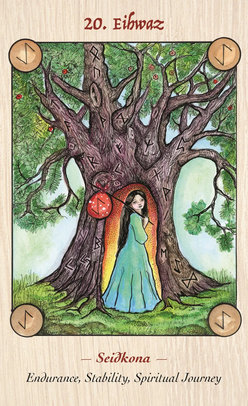 Czerpiąc ze starożytnej studni kobiecej mądrości, ta wzbogacona symbolami wyrocznia ukazuje moc nordyckich bogiń i sprawia, że tajemnicza sztuka wróżenia z run staje się dostępna dla wszystkich. Obrazy i przesłanie tego znakomicie wykonanego zestawu są nasycone staronordyckimi koncepcjami, bóstwami, sagami, ikonografią i wiedzą. Każda karta posiada własnego ducha runicznego, jest wzmocniona przez Boginię i ma czerwone krawędzie, które pomagają aktywować magię. Piękna podróż przez archeologiczne, mityczne i ezoteryczne cuda Elder Futhark w celu uzyskania wiarygodnych, wspierających wskazówek, które przemawiają do sedna twoich pytań i dostarczają natychmiastowych, praktycznych odpowiedzi na temat losu i fortuny.